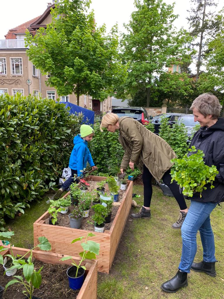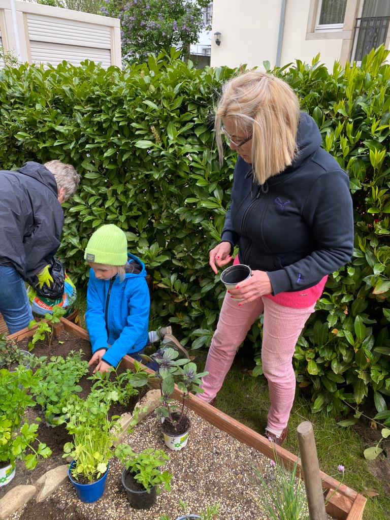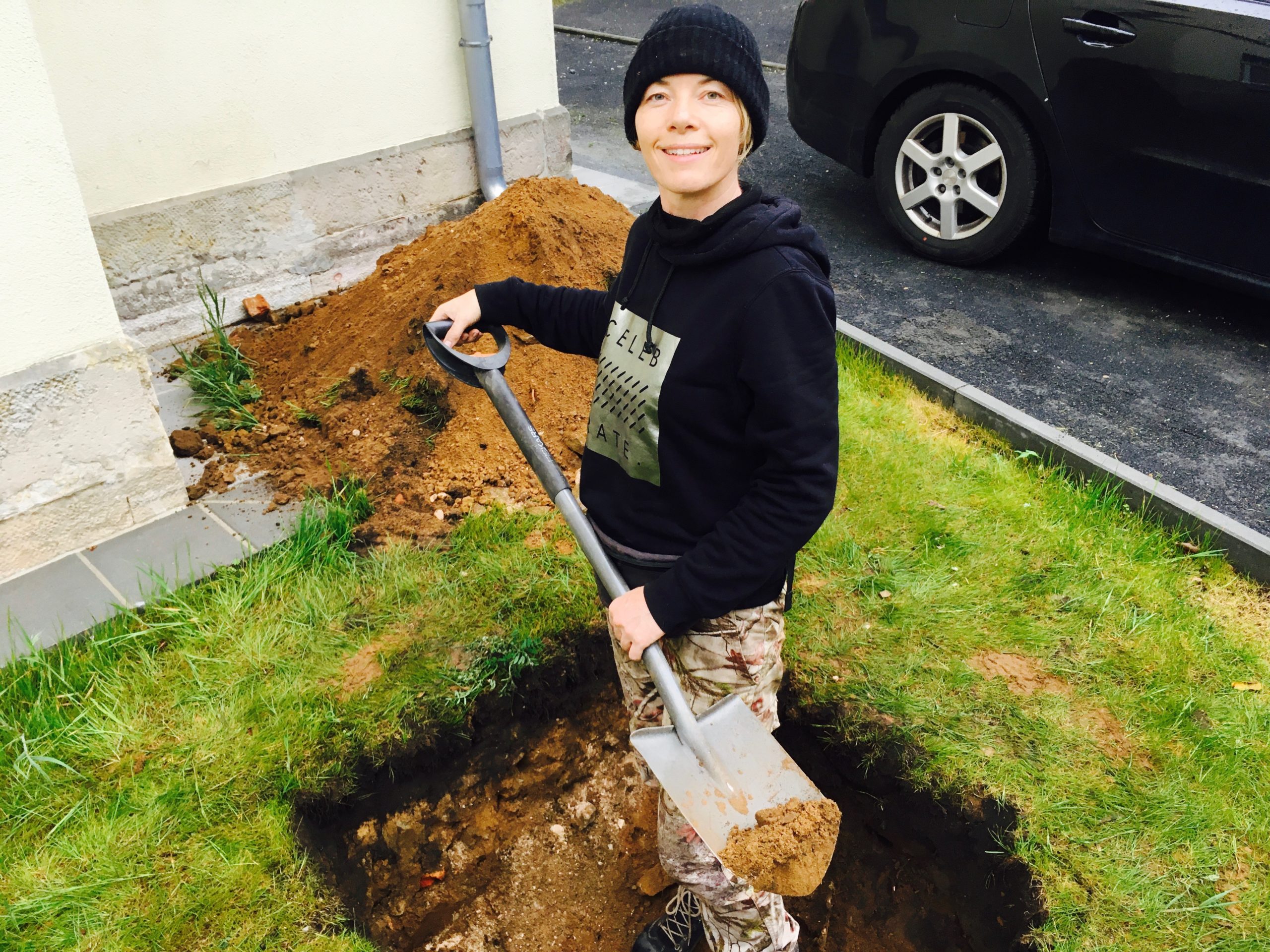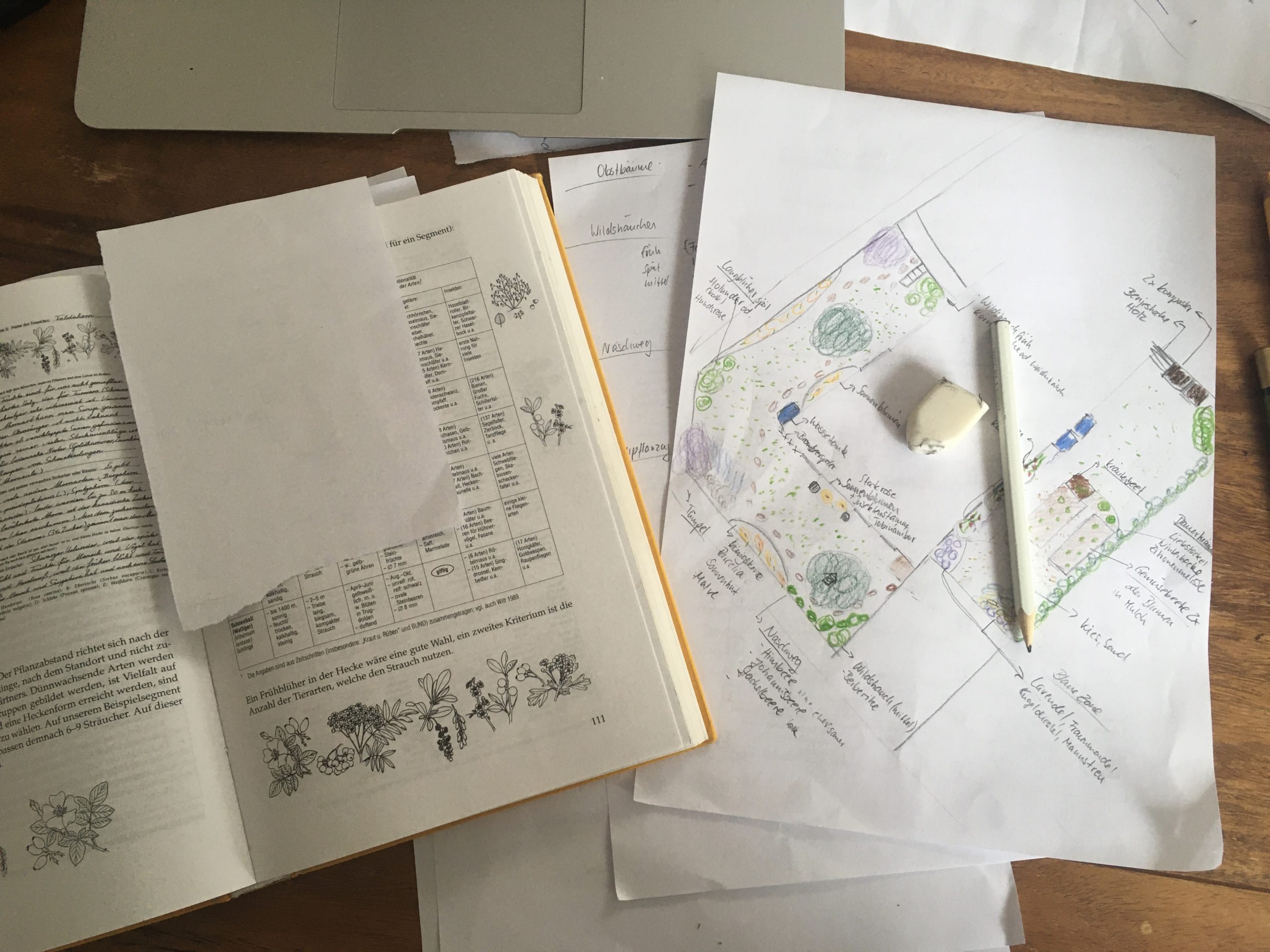 Ich ergriff die Chance und bot mich an, eine Idee für den gewünschten insektenfreundlichen Garten zu entwickeln. Dazu holte ich mir Hilfe vom Naturschutzbund NABU. Mit dessen Tipps und tagelanger Pflanzen- und Baustoffrecherche entstand ein Gartenplan. Die Idee gefiel, nur war partout kein Gartenbauunternehmen aufzutreiben. Dann also selber machen. Der Lockdown hatte meinen Kalender leergefegt und so war es beinahe ein Geschenk des Himmels und ich ergriff die Chance beim (Blatt)Schopfe. Ich nahm den Job als „Gartenbauunternehmerin“ an. Von der Galaband zum Galabau – ein Abenteuer der besonderen Art.