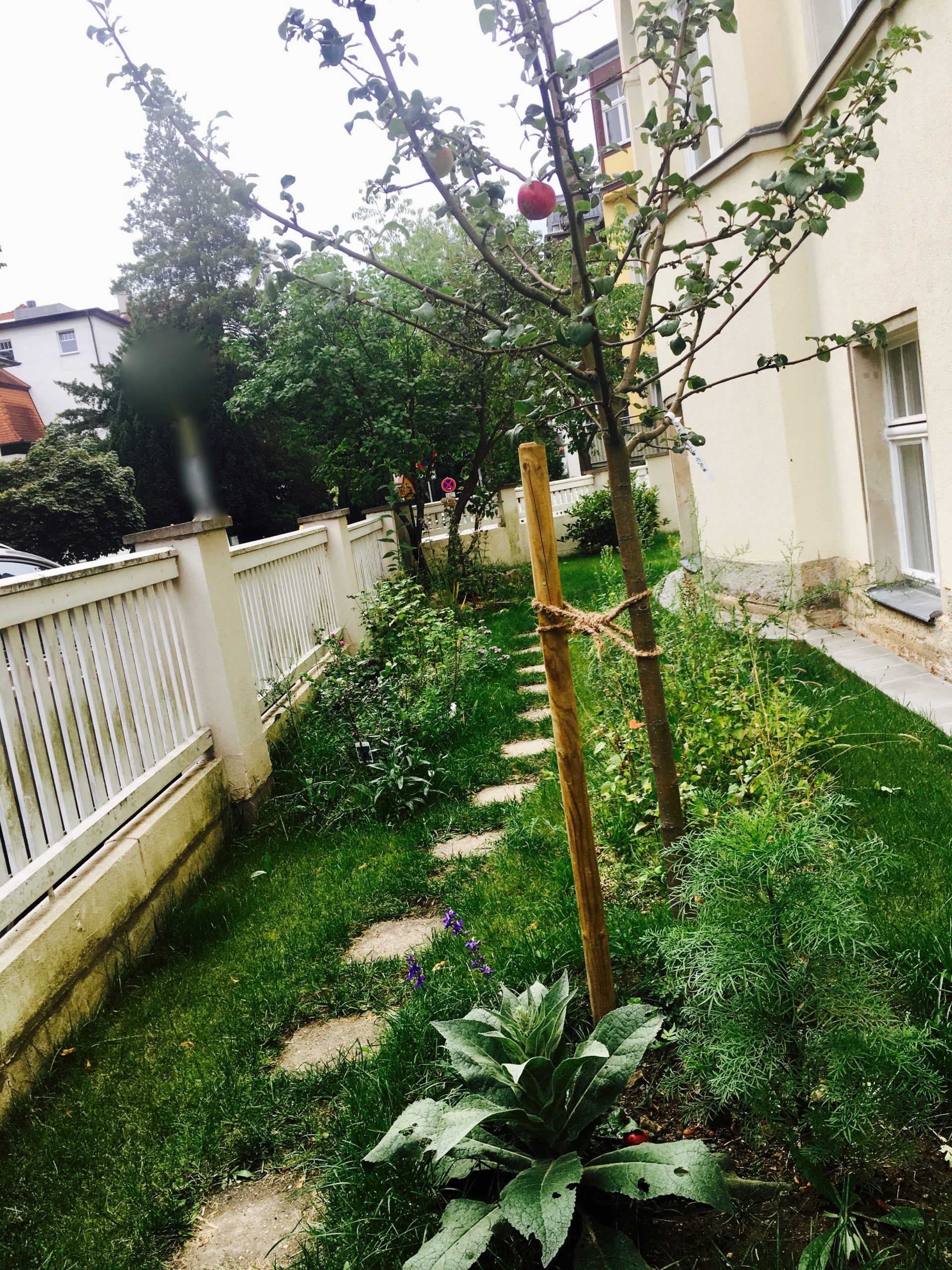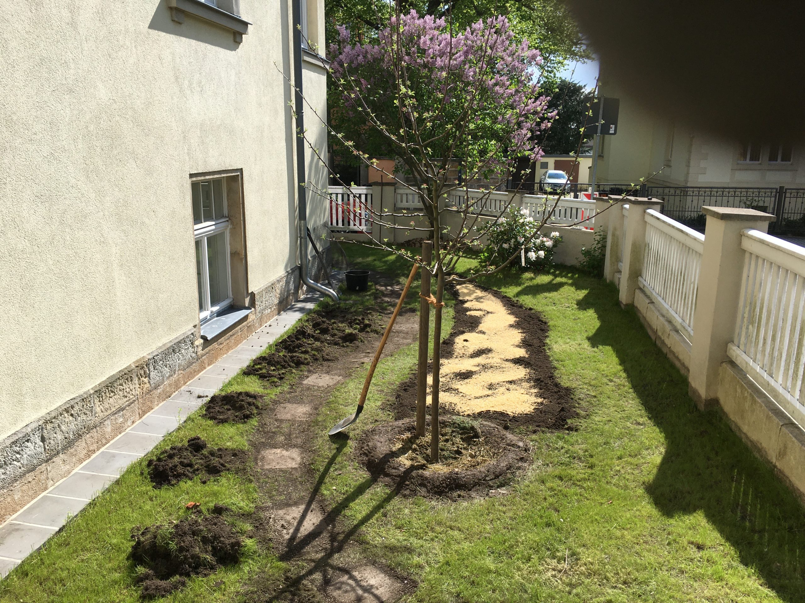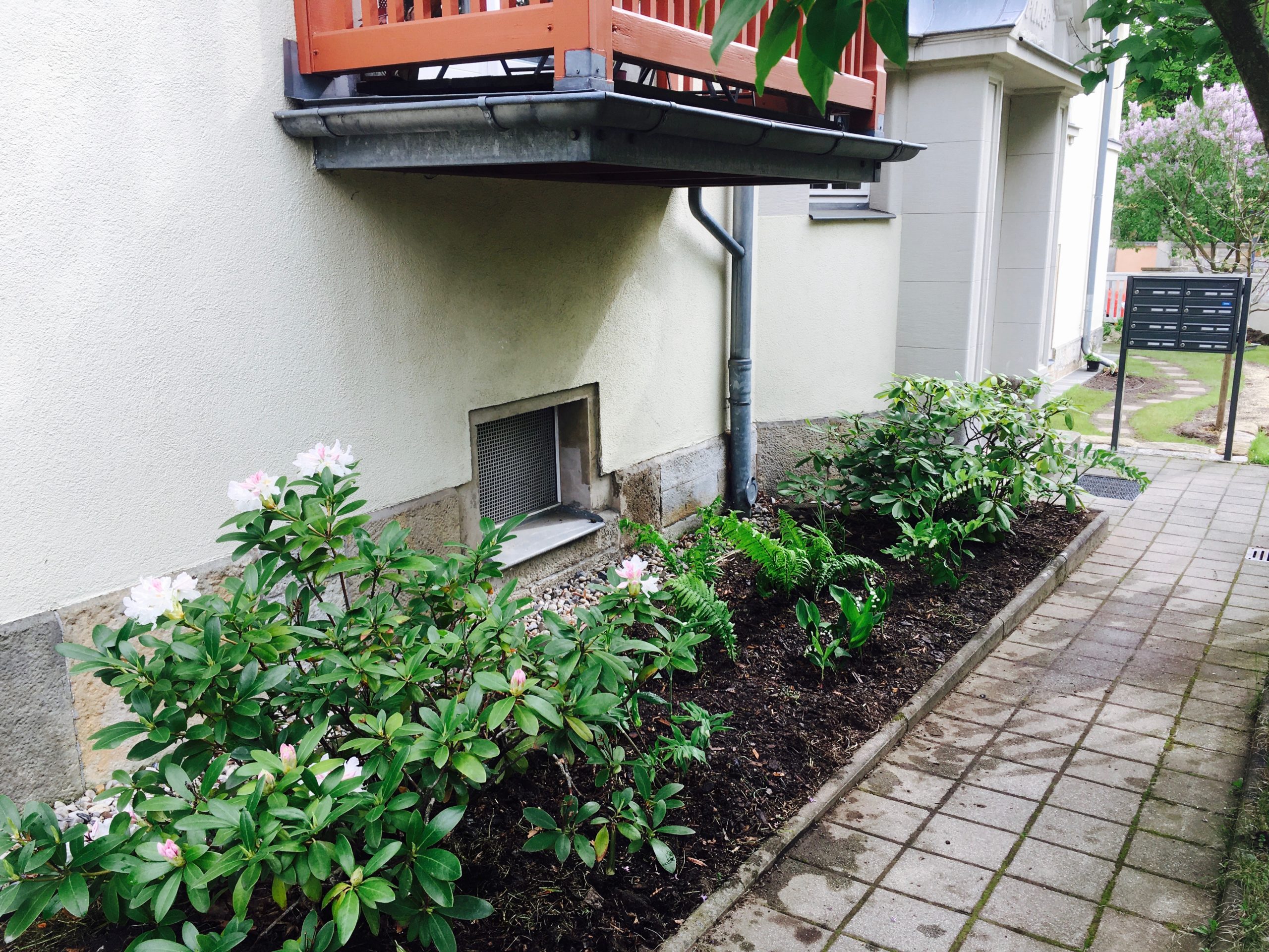 Gartenbaufirmen, die spontan einen Vorgarten umgestalten können, waren einfach nicht zu finden. Wegen der Trockenlegung der Hausmauern wurde der Garten, der aus Ziersträuchern und Sauerkirschbäumchen bestand, einige Monate vorher beseitigt. Wäre es nach der Verwalterfirma gegangen, hätte hier nur die Wiederherstellung des alten Zustandes stattgefunden. Außerdem gab das Budget der Eigentümergemeinschaft lediglich eine stadtteiltypische „Standardbepflanzung“ her.