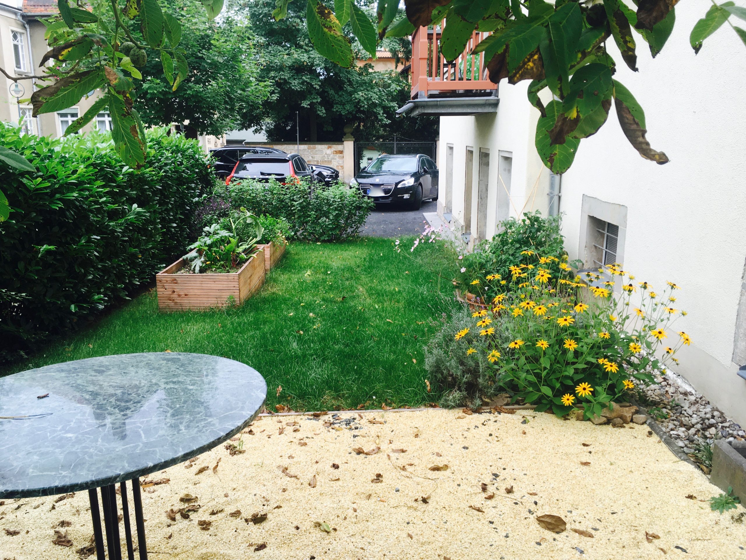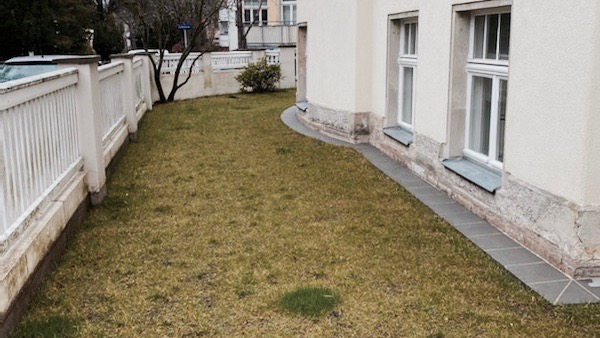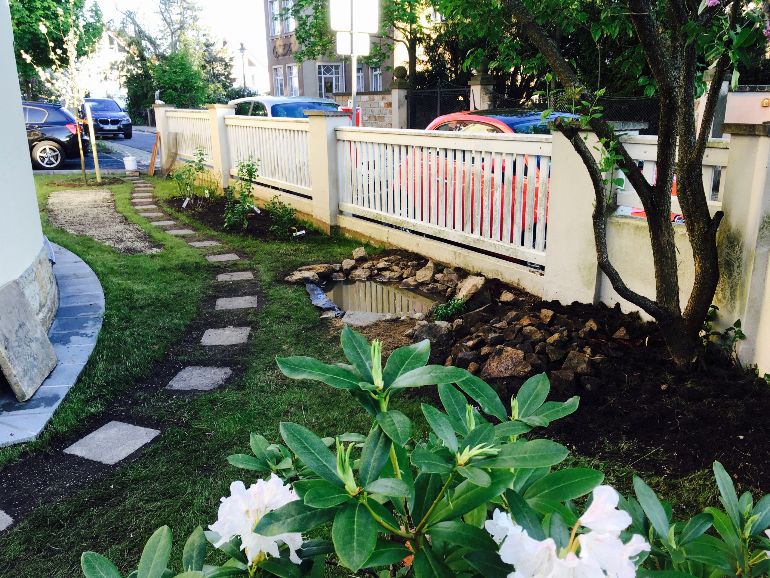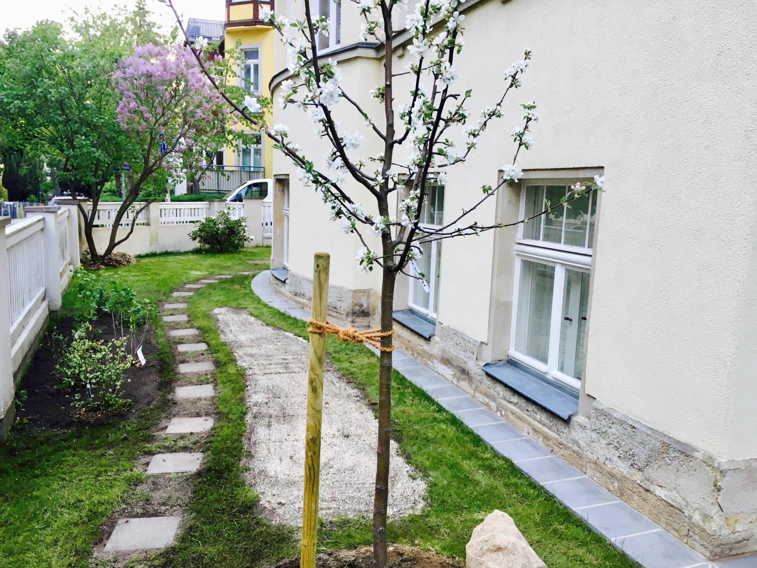 Gartenbaufirmen, die spontan einen Vorgarten umgestalten können, waren einfach nicht zu finden. Wegen der Trockenlegung der Hausmauern wurde der Garten, der aus Ziersträuchern und Sauerkirschbäumchen bestand, einige Monate vorher beseitigt. Wäre es nach der Verwalterfirma gegangen, hätte hier nur die Wiederherstellung des alten Zustandes stattgefunden. Außerdem gab das Budget der Eigentümergemeinschaft lediglich eine stadtteiltypische „Standardbepflanzung“ her.